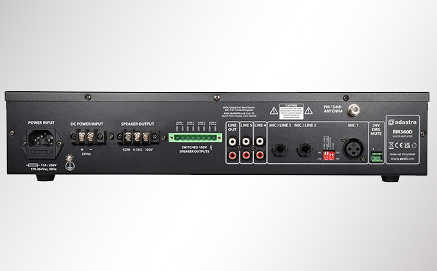 Adastra RM360 100V Mixer-Amplifier with DAB+, BT, USB/SD