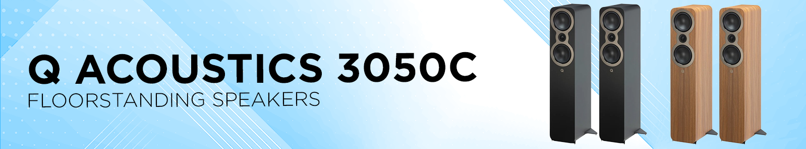 Q Acoustics 3050c Floorstanding SpeakersBass Unit: 2 x 142 mm (5.5 in) Treble Unit: 1 x 22 mm (0.9 in) Frequency Response (-6 dB): 42 Hz – 30 kHz Nominal Impedance: 6 Ω Minimum Impedance: 3.8 Ω Sensitivity (1 m, 2.83 Vrms @ 1 kHz): 90.0 dB Recommended Amplifier Power: 25 – 150 W Crossover Frequency: 2.4 kHz Effective Volume: 41.6 L Dimensions (per loudspeaker) HxWxD (Inc spikes and stabiliser): 1021 x 315 x 316 mm (40.2 x 12.4 x 12.4 in) Weight (per loudspeaker): 17.8 Kg (39.4 lbs)