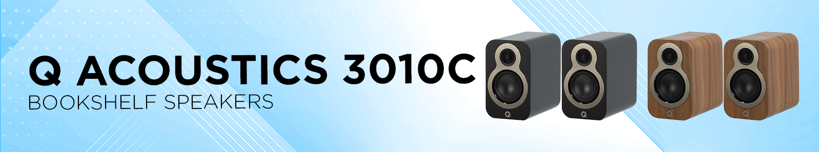 Q Acoustics 3010c Bookshelf SpeakersBass Unit: 1 x 101 mm (4.0 in) Treble Unit: 1 x 22 mm (0.9 in) Frequency Response (-6 dB): 60 Hz – 30 kHz Nominal Impedance: 6 Ω Minimum Impedance: 3.7 Ω Sensitivity (1 m, 2.83 Vrms @ 1 kHz): 85.0 dB Recommended Amplifier Power: 15-80 W Crossover Frequency: 3.1 kHz Effective Volume: 4.5 L Dimensions (HxWxD): 254 x 155 x 251 mm (10.0 x 6.1 x 9.9 in)