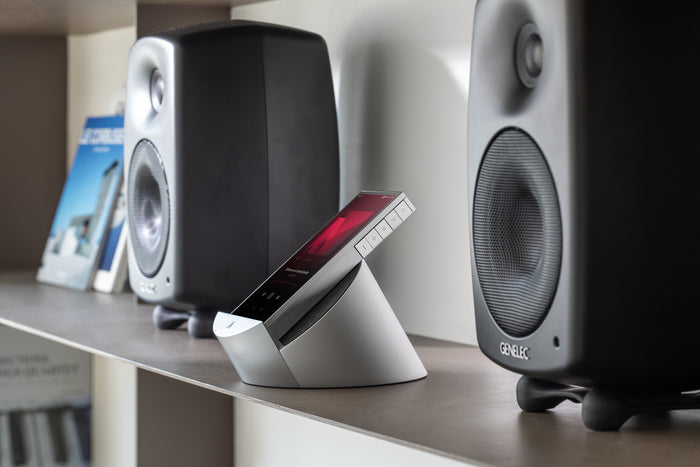 The included cradle allows for use not only as a portable device but also as a home audio source.