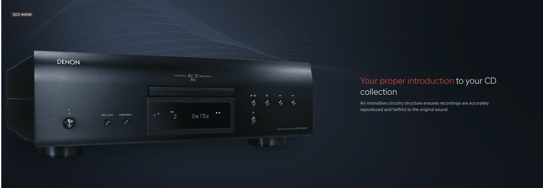 Listen to elevated audio and masterfully reproduced songs with the Denon DCD-600NE CD Player. With Denon-proprietary AL32 Processing technology, combined with an innovative circuitry structure, ensure recordings are accurately reproduced and beautifully faithful to the original sound. Vibration-resistant design reduces adverse audio effects of heavy components within the player, guaranteeing the sound quality meets rigorous Denon standards. And with a more than 100-year legacy of crafting audio components, trust Denon to achieve amazing sound that exceeds your expectations.