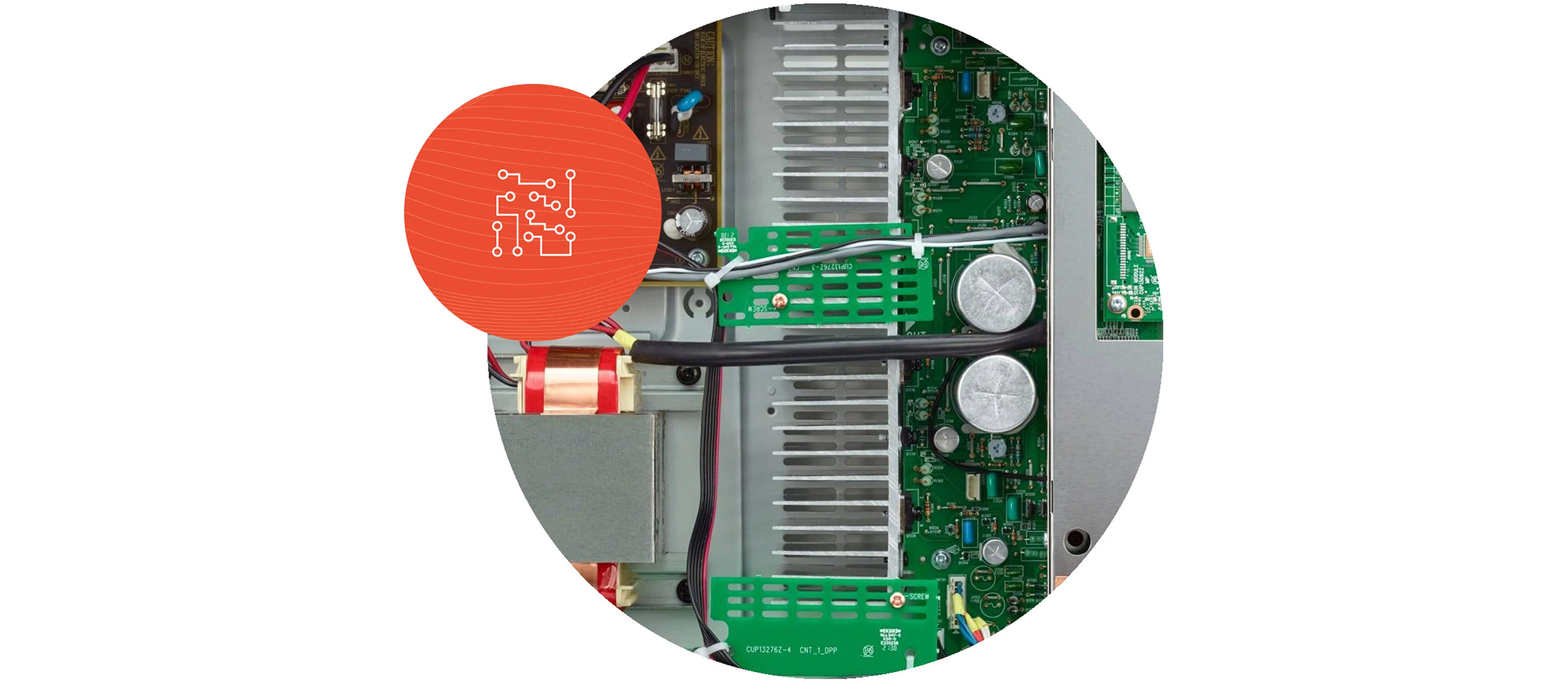 Power transformers are fitted near the bottom and immediately above the insulators to prevent unwanted vibration. The vibration surrounding the chassis is reduced, resulting in pristine sound.