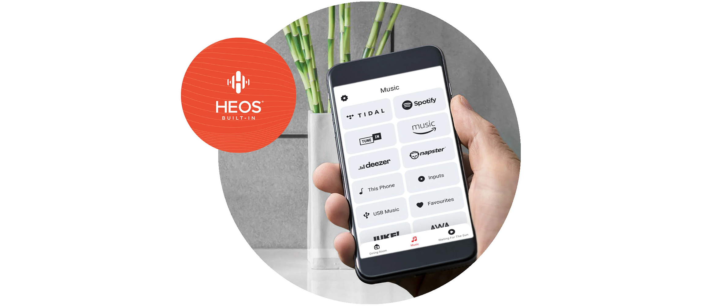 The HEOS® Built-in Wi-Fi connects to your network to provide near-limitless streaming options. Listen to a wide array of online music services or connect to a smart device via AirPlay 2 or Bluetooth.