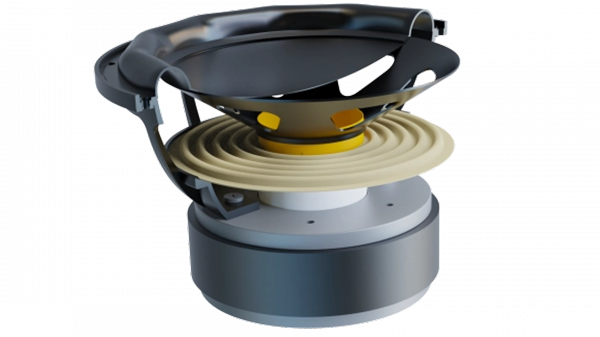 These new high excursion woofers utilize a rigid and lightweight aluminum cone sandwiched between two treated paper cones using a unique gluing process. This method retains the transient benefits of cellulose cones with the torsional rigidity of aluminum and allows for exceptionally long cone throws for better handling of high signal levels and low bass.
