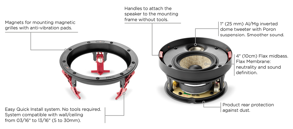 Focal ICW in-wall and in-ceiling loudspeakers are extremely compact and efficient. While they are designed to reproduce stereo sound as faithfully as possible, they are also ideal for Home Cinema applications, reproducing dialog clearly and movie soundtracks dynamically.