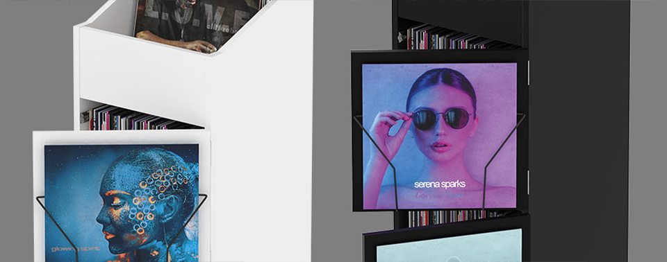 With the perfectly designed Record Box Display Door, you can also extend your Record Rack to protect your record compartments from dust and light, as well as to elegantly highlight your vinyl covers.