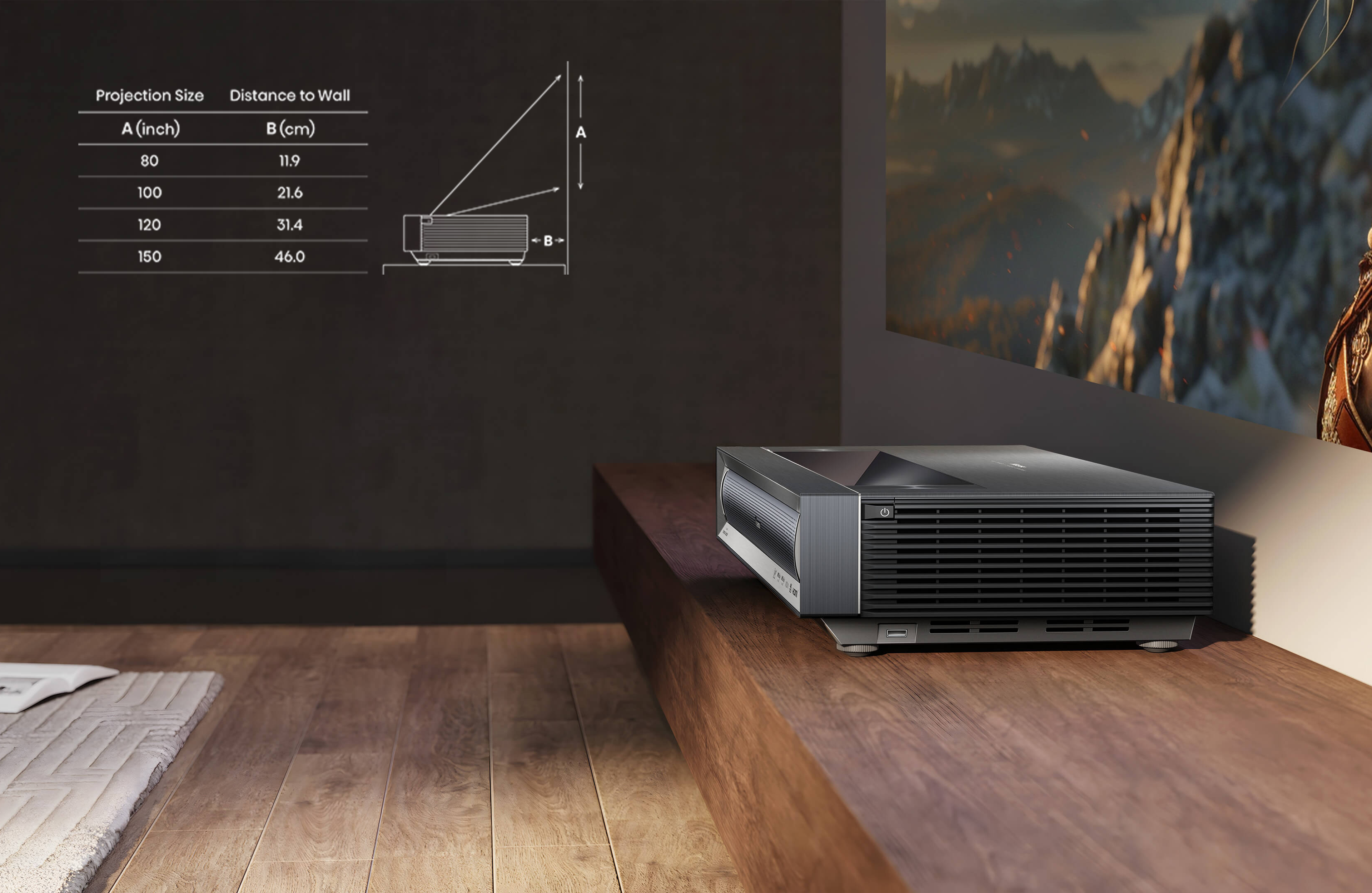 The ultimate ultra short throw technology allows a giant picture within small distance without sacrificing any resolution and clarity.