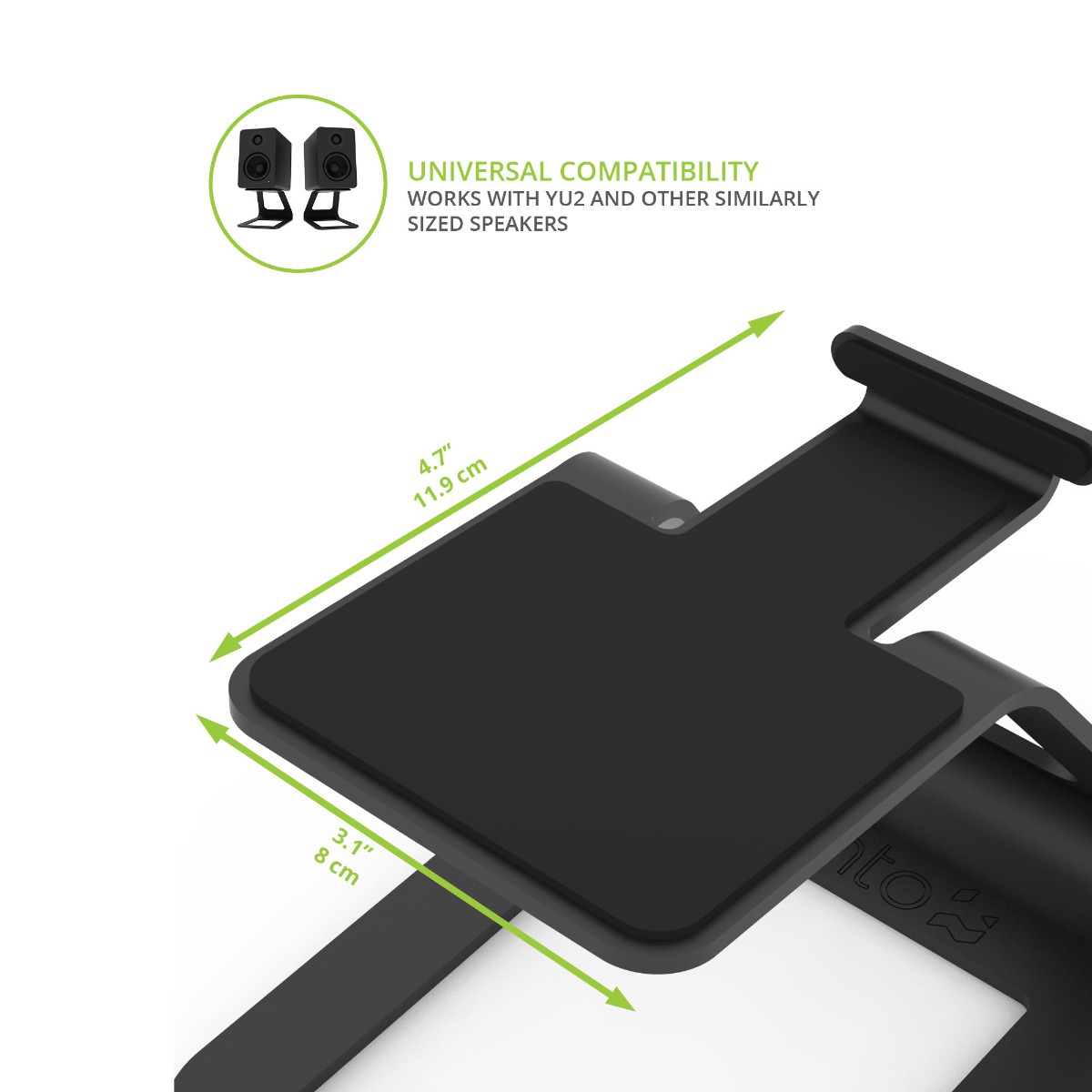 Free up desk space and enjoy superior sound quality with the SE2 Elevated Speaker Stand. With a height of 3.8", the SE2 boosts your speakers up and off the surface of your desk so that they're better aligned with your ears to give you a flawless on-axis response. Its cantilevered and angled platform is designed to absorb resonance and deliver a pure sound without any reflections from nearby surfaces. 1.5mm of silicone padding provide a strong grip that helps keep your speakers and stand in-place. The SE2 comes with a black or white finish and can hold up to 7.1 lbs.