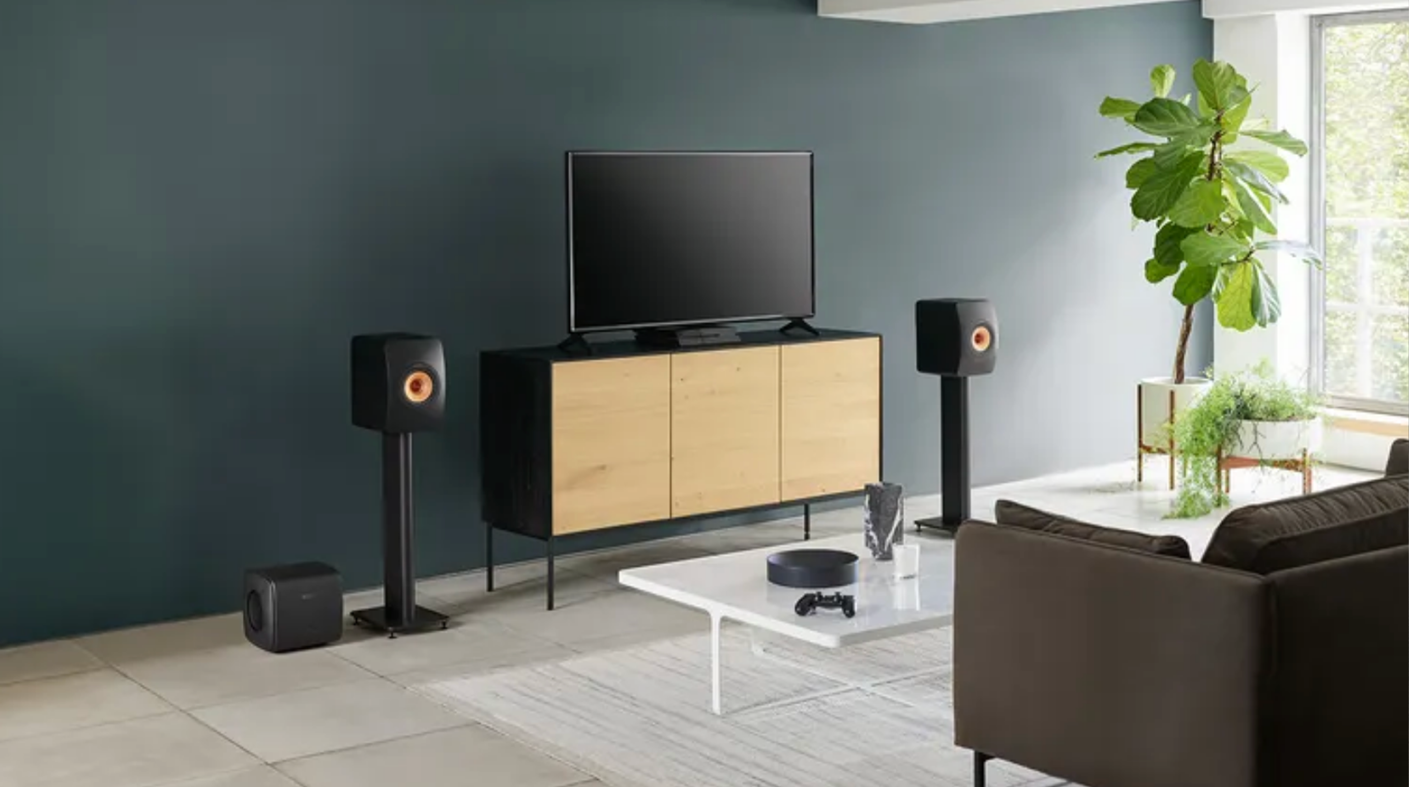 The KEF KC62 delivers room-filling low frequencies from a surprisingly compact cabinet. Its advanced 6.5-inch drivers and dual-opposing configuration provide tight, controlled bass that enhances movies, music, and gaming without overwhelming your living space.