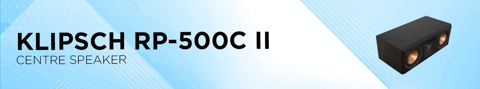 Klipsch RP-500C II Centre SpeakerFrequency Response: 56-25kHz +/- 3dB Sensitivity: 94dB @ 2.83V / 1m Power Handling (Cont/Peak): 100W / 400W Nominal Impedance: 8 Ohms Compatible Crossover Frequency: 1,630Hz High Frequency Driver: 1" Titanium LTS Vented Tweeter with Hybrid Cross-Section Expanded Tractrix® Horn Low Frequency Driver: Dual 5.25" Cerametallic™ Cone Woofers with Faraday rings Enclosure Material: MDF (Internally Braced) Enclosure Type: Bass Reflex via rear-firing Tractrix® Port Inputs: Single aluminum binding posts Height Inches (MM): 6.87" (17.4 cm) Width Inches (MM): 19.34" (49.1 cm) Depth Inches (MM): 10.58" (26.9 cm) Product Weight Lbs (Kg): 18.3lb (8.30kg) Finish: Ebony, Walnut Accessories: Angle screw