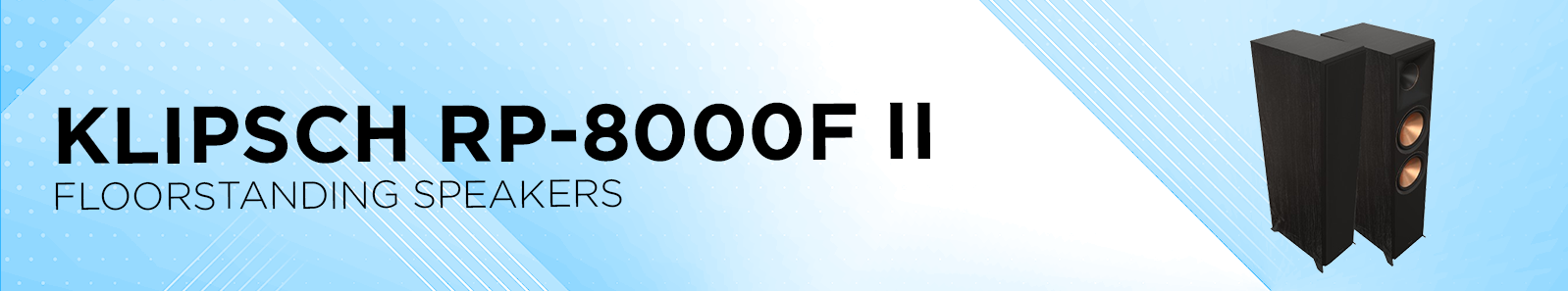 | Features | Klipsch RP-8000F II Floorstanding SpeakersFrequency Response: 35–25 kHz ±3 dB Sensitivity: 98 dB @ 2.83V / 1m Power Handling (Continuous/Peak): 150 W / 600 W Nominal Impedance: 8 Ohms Compatible Crossover Frequency: 1630 Hz High Frequency Driver: 1" Titanium LTS Vented Tweeter with Hybrid Cross-Section Expanded Tractrix® Horn Low Frequency Driver: Dual 8” Cerametallic Cone Woofers with Faraday rings Enclosure Material: MDF (Internally Braced) Enclosure Type: Bass Reflex via dual chamber rear-firing Tractrix® Ports Inputs: Dual aluminum binding posts / bi-wire / bi-amp with Dolby Atmos® passthrough Height: 43.10" (109.5 cm) Width: 10.84" (27.5 cm) Depth: 18.25" (46.3 cm) Product Weight: 61.4 lb (27.85 kg) Finish: Ebony, Walnut