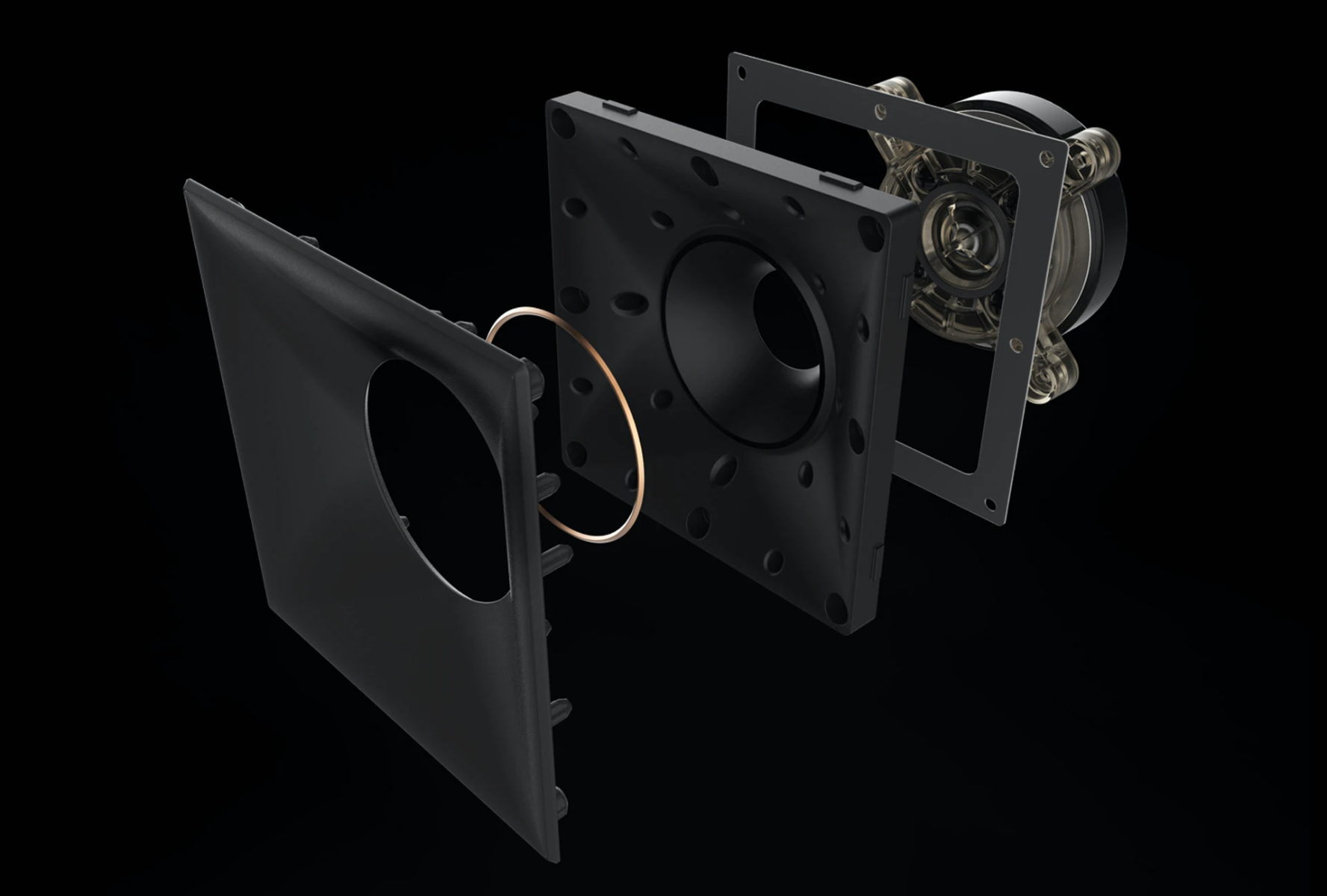Horn loading maximizes efficiently and increases detail while focusing high frequencies towards the listening area. Proprietary Tractrix® geometry provides the most efficient transfer of high frequency waves into the listening area. The phase plug and compressed molded silicon face ensure smooth frequency response. When combined, the cleanest, most natural sound possible is created. The second generation increases horn size for a larger soundstage and enhanced directivity