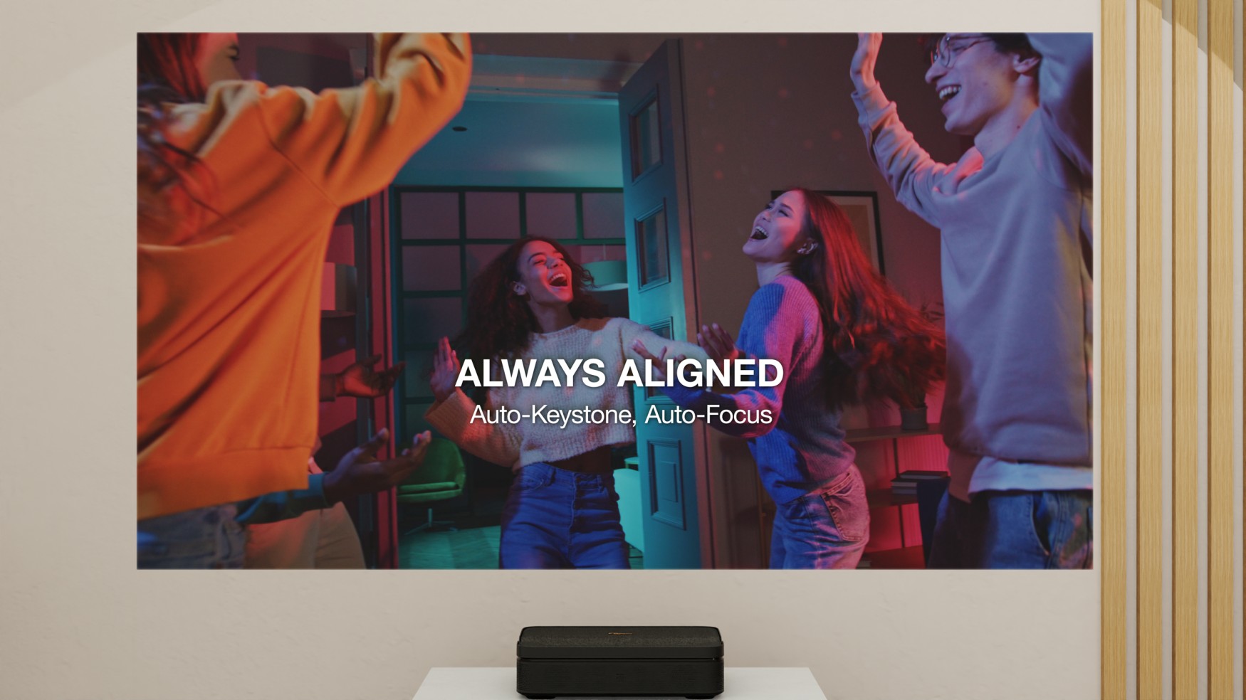Optimise your space and enjoy amazing big-screen experiences with an ultra short throw lens that casts up to 100-inch images when placed just inches/ cm away from the projection surface.