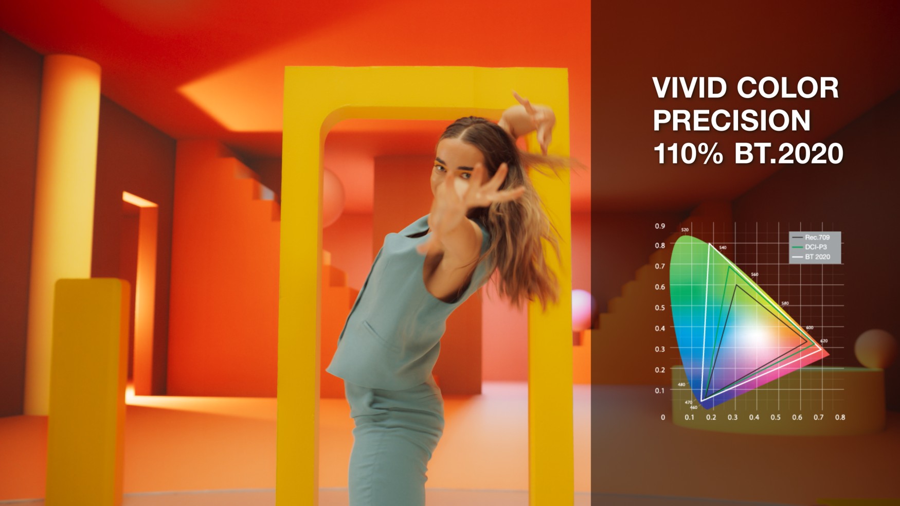 Discover vibrant color with 110% BT.2020, offering a wider range of rich, lifelike hues for unmatched clarity and realism. Perfect for movies or creative work, enjoy deeper reds, brighter greens, and vivid blues that bring your content to life.