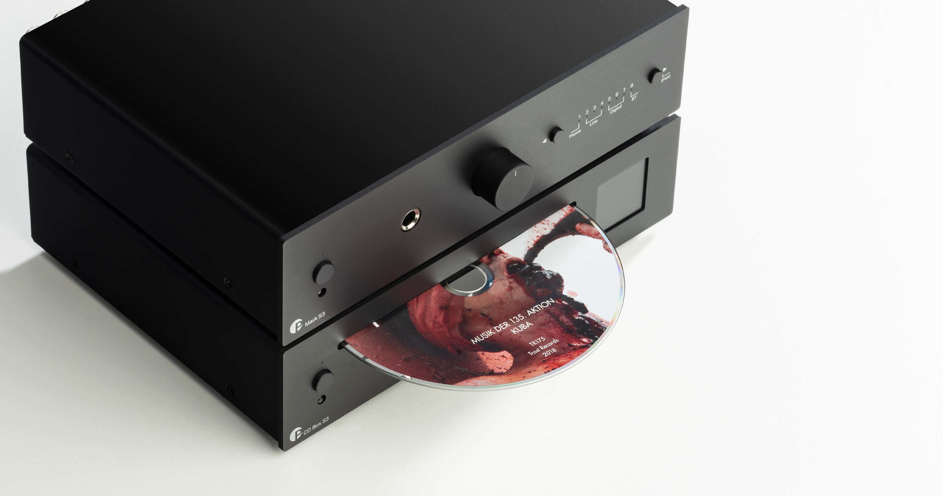 Maia S3Power Output: 2x 23W / 40W at 8 / 4ohms (1% THD) Frequency Response (20Hz - 20kHz): <-0,5dB @4ohm Channel Separation: -69dB at 10kHz Signal to Noise Ratio: 97dB (101dB – ‘A’ weighted) @4ohm THD: < 0.04% at 10W / 4 ohms Headphone Amplifier: 2x 75mW at 32ohm (1% THD) Headphone Output: 6.3mm jack (16 – 600ohms) Analogue Inputs: 3x pair RCA, 1x phono MM (RCA) Digital Inputs: RCA coax, 2 x Toslink, Bluetooth 5.0 (aptX) DA-Converter: Cirrus Logic CS4344 24bit/192kHz Variable Output: 1x pair RCA Speaker Connectors: 4mm Ø banana plugs, spades connectors or naked wire Power Supply: 20V/3A DC; 100 - 240V, 50/60Hz Standby Power Consumption: < 0.5 watts Dimensions (WxHxD): 206 x 55 x 153mm (176mm with sockets) Battery Remote Control: 1 x CR2032 / 3V or CR2025 / 3V Weight: 1070g without power supply