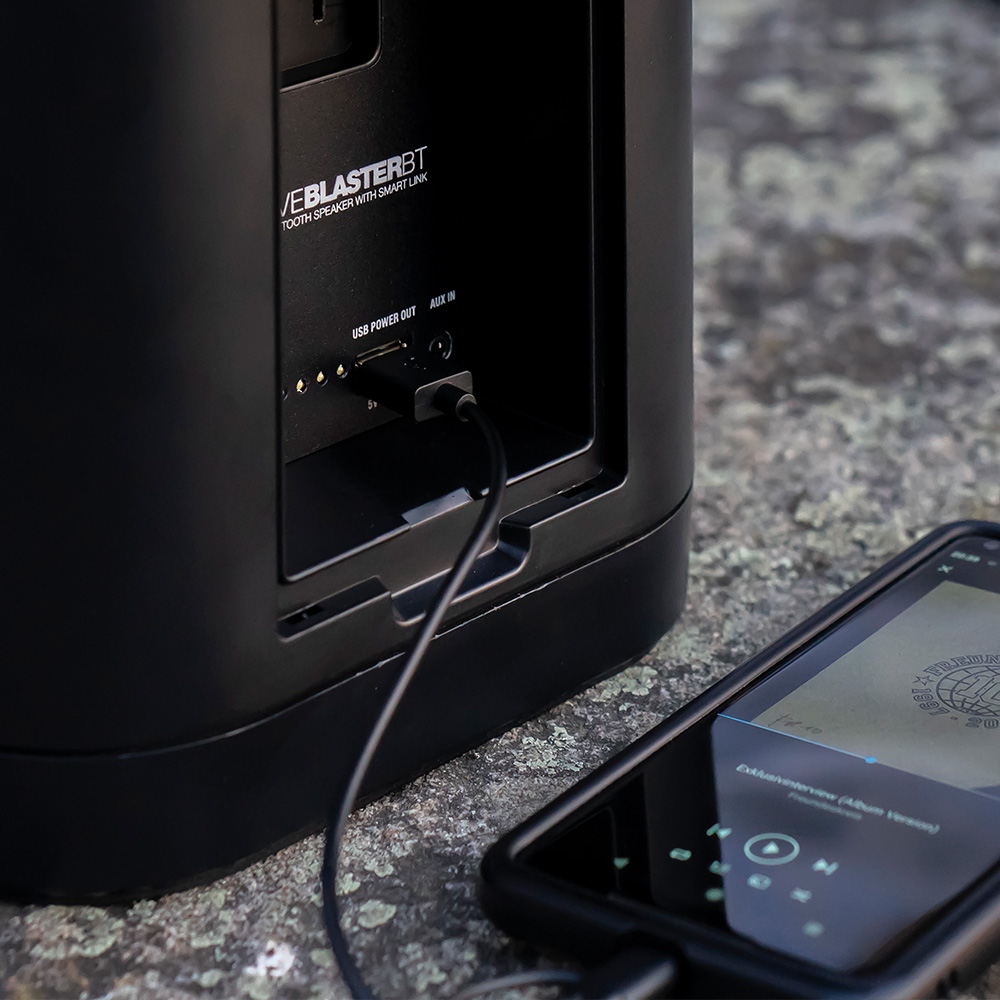 Portable 100 W speaker with massive bass performance. Bluetooth 4.0: Up to 30 meters transmission range and integrated rechargeable Li-ion battery (10 hours run-time) with USB charging function for other devices