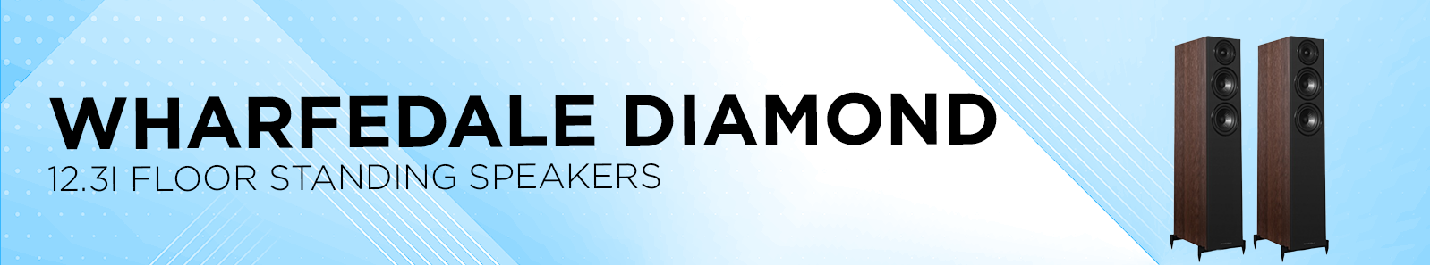| Features | Wharfedale Diamond 12.3i Floor Standing SpeakersDesign: 2.5-way floor-standing speaker Enclosure Type: Bass-reflex, rear-ported Bass / Mid Drivers: Dual 5″ (130 mm) Klarity™ polypropylene-mica cones Tweeter: 1″ (25 mm) textile dome Sensitivity (2.83 V @ 1 m): 89 dB Recommended Amplifier Power: 30 – 150 W Peak SPL: 102 dB Nominal Impedance: 8 Ω (compatible); Minimum Impedance: ~5 Ω Frequency Response (±3 dB): 45 Hz – 20 kHz Bass Extension (–6 dB): ~40 Hz Crossover Frequency: ~2.2 kHz Cabinet Volume: ~26.6 litres Dimensions (H × W × D): ~ (925 + 50) × 180 × (320 + 28) mm Weight: ~19.5 kg per speaker