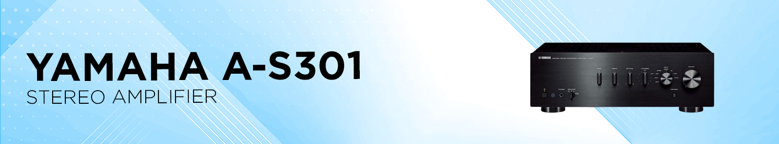 | Features | Yamaha A-S301 Stereo AmplifierMinimum RMS Output Power (8 Ω, 20 Hz–20 kHz): 60 W + 60 W (0.019% THD) Maximum Power (4 Ω, 1 kHz, 0.7% THD): 95 W + 95 W High Dynamic Power per Channel (8/6/4/2 Ω): 100 / 120 / 140 / 150 W Damping Factor: 210 Frequency Response: 10 Hz – 100 kHz ±1.0 dB Total Harmonic Distortion: 0.019% (50 W / 8 Ω, 20 Hz–20 kHz) Signal-to-Noise Ratio (CD): 99 dB (input shorted, 200 mV) Audio Inputs / Outputs: 8 / 2 Digital Inputs: Yes (Optical / Coaxial) Subwoofer Output: Yes DC Output: Yes Pure Direct Mode: Yes ToP-ART Design: Yes Standby Power Consumption: 0.5 W Power Management: Auto Power Standby Dimensions (W x H x D): 435 x 151 x 387 mm (17-1/8 x 6 x 15-1/4 in) Weight: 9.0 kg (19.8 lbs)